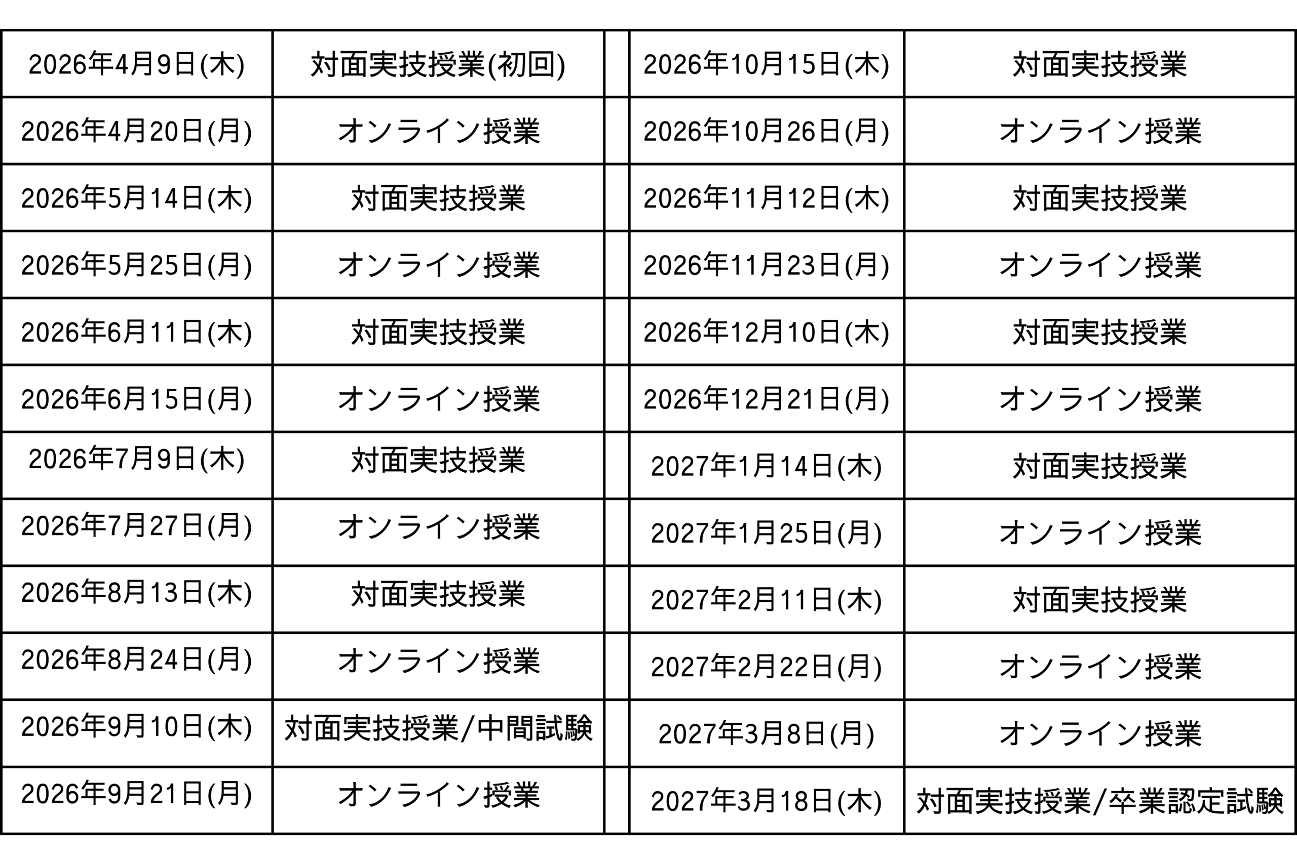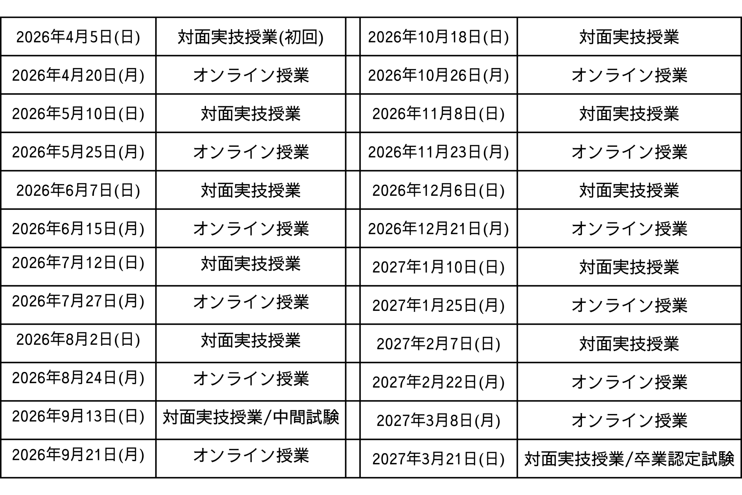 毎月1回(5時間)の対面実技授業と1回(5時間)のオンライン授業を行います。